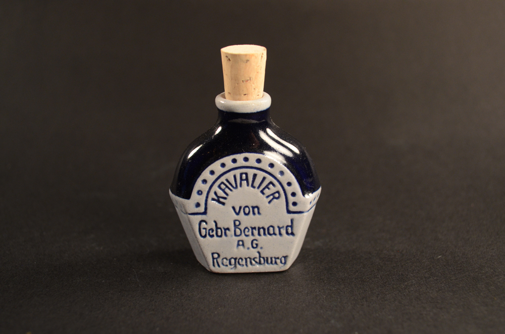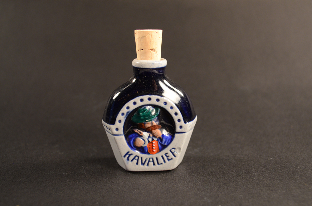 Small Black bottle w/embossed German man